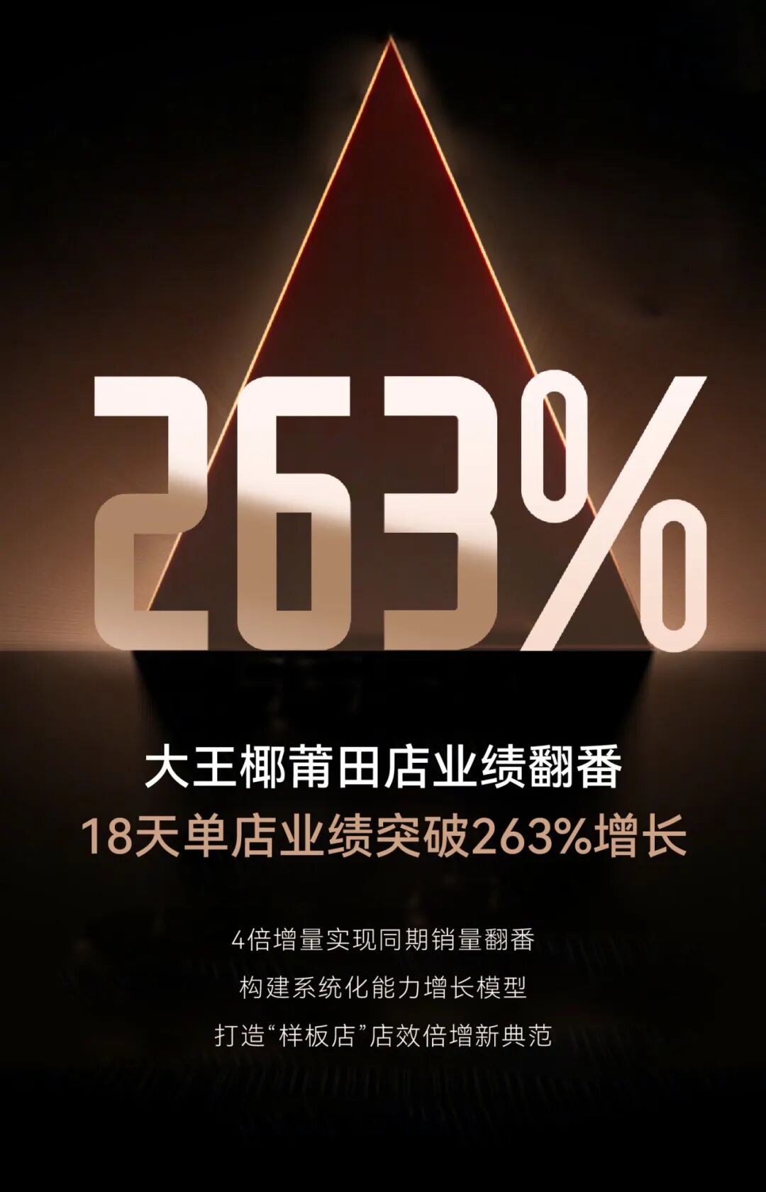 品牌的最终战场在终端门店。大王椰深刻认识到这一点,大力推行“零售转型”,赋能终端店效倍增。它通过确立零售转型渠道策略,开启“店效倍增”样板打造和复制,帮助门店实现从被动“等客流”到主动“造客流”、从依赖“资源驱动”到构建“能力驱动”的根本性跨越。这一零售逻辑的更新,让终端形成了长期经营的系统性优势。